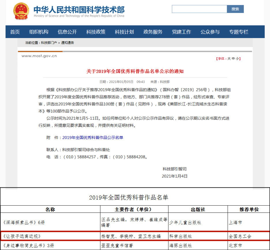 ? ? ? ? ?2021年1月4日,由楊智寬教授、李曉檸博士、藍衛(wèi)忠博士共同編寫的《讓孩子遠離近視》一書入選中華人民共和國科技部優(yōu)秀科普作品,是所有入選作品中一本眼科類科普書。 楊智寬教授,是中華醫(yī)學(xué)會眼科學(xué)分會眼視光學(xué)組副組長、中南大學(xué)愛爾眼科學(xué)院博士生導(dǎo)師、愛爾眼視光研究所所長; 李曉檸博士,是愛爾眼科醫(yī)院集團視光事業(yè)部專業(yè)事務(wù)主任、全國兒童眼保健專業(yè)委員會委員; 藍衛(wèi)忠博士,是中南大學(xué)愛爾眼科學(xué)院副教授、愛爾眼視光研究所副所長。 1、預(yù)防 預(yù)防青少年近視,從用眼習(xí)慣、用眼衛(wèi)生等多方面規(guī)范,預(yù)防孩子近視是重中之重,而如何養(yǎng)成好習(xí)慣,對用眼行為監(jiān)測和干預(yù)矯正一直以來是青少年近視防控的難點。目前,在泰安愛爾眼科可以通過云夾、護眼精靈等電子化產(chǎn)品將孩子的用眼數(shù)據(jù)進行分析,并時刻提醒孩子規(guī)范用眼。 2、檢查 青少年雙眼處于發(fā)育階段,每半年就需要帶孩子檢查一次視力。通過以遠視儲備檢查和雙眼視功能檢查為主的檢查技術(shù),判斷孩子眼睛情況及視力發(fā)育情況;對于已經(jīng)近視的兒童,則要通過醫(yī)學(xué)驗光配鏡及對應(yīng)的視覺訓(xùn)練方案進行干預(yù),減緩近視加深。 3、控制 科學(xué)的預(yù)防和控制近視,要在了解孩子眼部情況之后,通過醫(yī)學(xué)驗光配鏡方案結(jié)合屈光發(fā)育檔案,檢測孩子的視力情況,通過配鏡、角膜塑形鏡及視覺發(fā)育訓(xùn)練等科學(xué)正確的方法控制近視度數(shù)增長。 泰安光明愛爾眼科醫(yī)院視光科主任王合剛表示,科學(xué)、合理的配鏡還應(yīng)該考慮孩子的視功能情況,國際上已經(jīng)開始逐步以“雙眼視功能檢查”替代單眼驗光。不同的孩子近視度數(shù)相同,但視功能狀況不同,在配鏡過程中如果不考慮這些因素,視力控制的希望可能落空。因此,只要看不清黑板,家長就帶孩子去眼鏡店配一副鏡片,是一種過于簡單、不科學(xué)的做法。