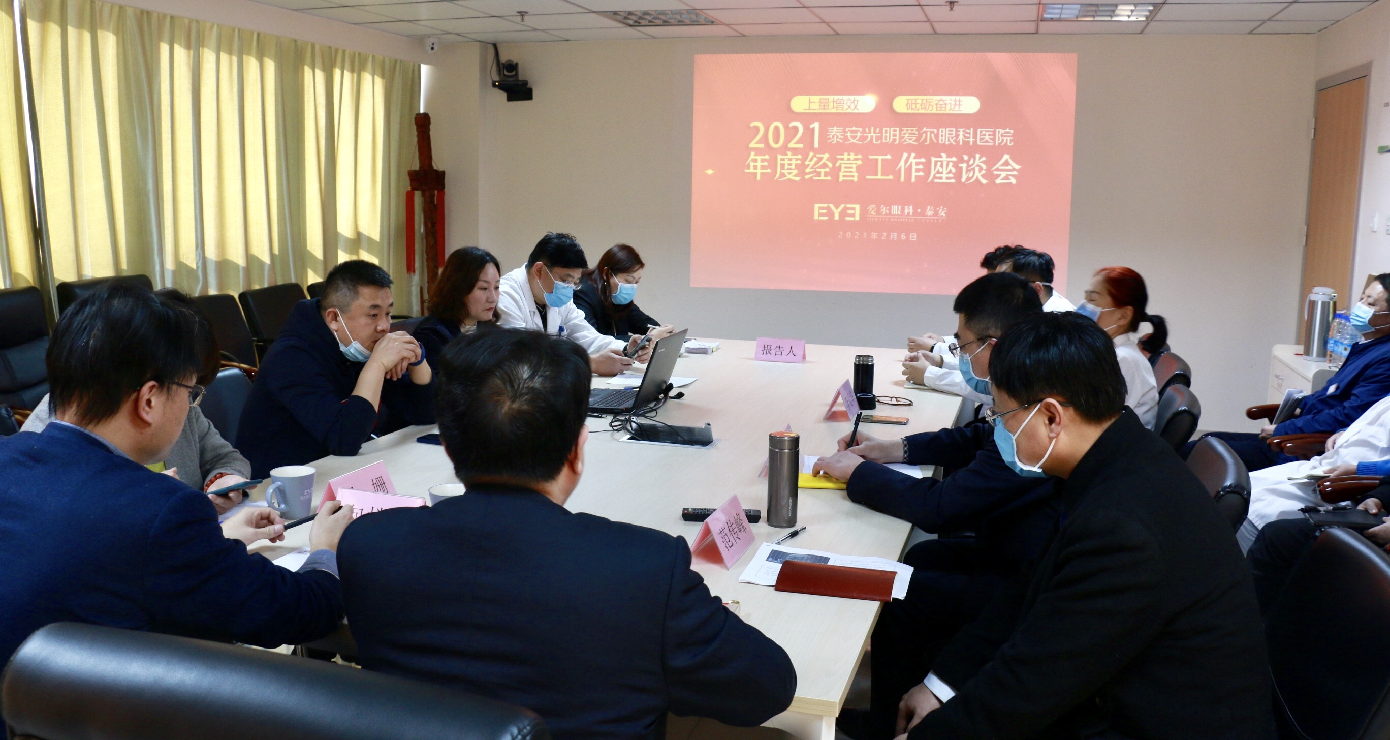 ? ? ? ?臨近春節(jié),愛爾眼科山東省區(qū)CEO包樓軍、財務(wù)總監(jiān)易珊、營銷總監(jiān)單衍寬等省區(qū)領(lǐng)導(dǎo)于2月6日下午到我院進行調(diào)研、慰問、督導(dǎo),我院CEO楊敬昌組織醫(yī)院領(lǐng)導(dǎo)班子召開年度經(jīng)營座談會,將本年度工作計劃進行匯報。 ? ? ? ? 在座談會上,我院CEO楊敬昌對省區(qū)領(lǐng)導(dǎo)的到來表示熱烈歡迎和感謝,并送上春節(jié)的祝福。我院社會公益部及屈光科、大視光科、青白科、眼底病科、眼表淚道科的負責人,分別將本科室的年度工作進行了匯報。省區(qū)領(lǐng)導(dǎo)針對各科室的工作分別進行點評,并給予建議和指導(dǎo)。 ? ? ? ? ?山東省區(qū)CEO包樓軍針對泰安愛爾的工作,提出了四點要求:一是醫(yī)院高質(zhì)量發(fā)展,要解放思想,做到精細化管理;二是醫(yī)院管理要向人性化管理轉(zhuǎn)型,績效考核應(yīng)做到科學有效,向一線的工作人員傾斜,向高效益崗位傾斜,提升員工幸福感;三是要提升患者就診體驗,保持眼科專業(yè)綜合實力,四是要加強黨建工作,引領(lǐng)醫(yī)院文化發(fā)展。 ? ??? ??CEO楊敬昌在會議上代表院委會向省區(qū)領(lǐng)導(dǎo)表態(tài),院領(lǐng)導(dǎo)班子要加強學習、轉(zhuǎn)變思路,一心一意謀發(fā)展,做大做強泰安愛爾。