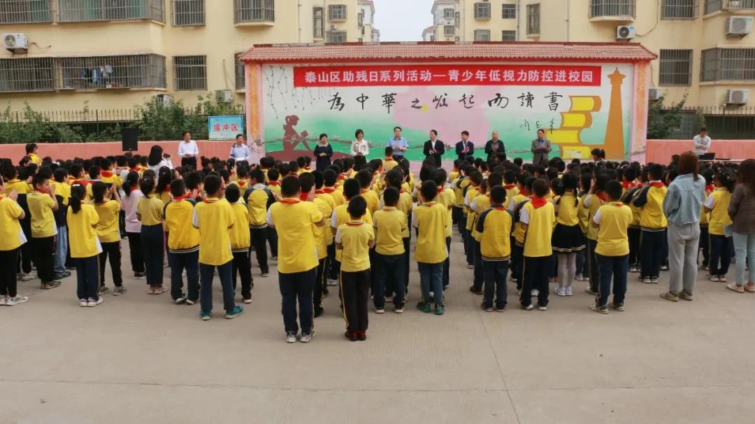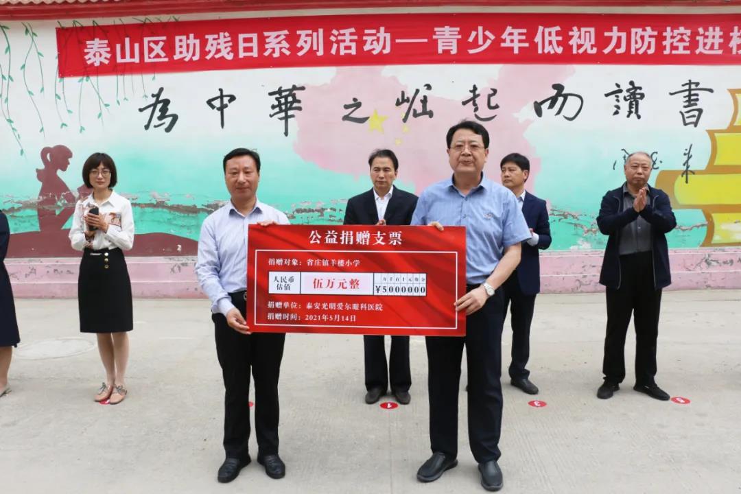 ? ? ? ? 5月14日上午,泰安光明愛爾眼科醫(yī)院數(shù)十位醫(yī)護(hù)人員攜帶相關(guān)設(shè)備與低視力防控產(chǎn)品,驅(qū)車趕往位于泰安市泰山區(qū)省莊鎮(zhèn)的羊樓小學(xué),開展青少年低視力防控進(jìn)校園活動。 ? ? ? ? ?此次活動是泰山區(qū)殘聯(lián)舉行助殘日系列活動的其中一站,是一項以低視力防控、眼健康科普為主要宗旨,以降低校園內(nèi)近視發(fā)生率,呵護(hù)學(xué)生眼健康為目標(biāo)的公益助學(xué)活動。 ? ? ? ? ?泰安市殘聯(lián)四級調(diào)研員李廣喜、泰山區(qū)政府分管領(lǐng)導(dǎo)范玉文、泰安光明愛爾眼科醫(yī)院CEO楊敬昌、泰山區(qū)殘聯(lián)理事長孫超、副理事長劉勝華,省莊鎮(zhèn)副鎮(zhèn)長馬紅、省莊鎮(zhèn)教育委員會黨委副書記馬長榮,羊樓小學(xué)校長趙光明以及區(qū)殘聯(lián)、愛爾眼科部分醫(yī)護(hù)人員及羊樓小學(xué)教職工和學(xué)生參加此次活動?;顒佑商┥絽^(qū)殘聯(lián)黨組書記劉長順主持。