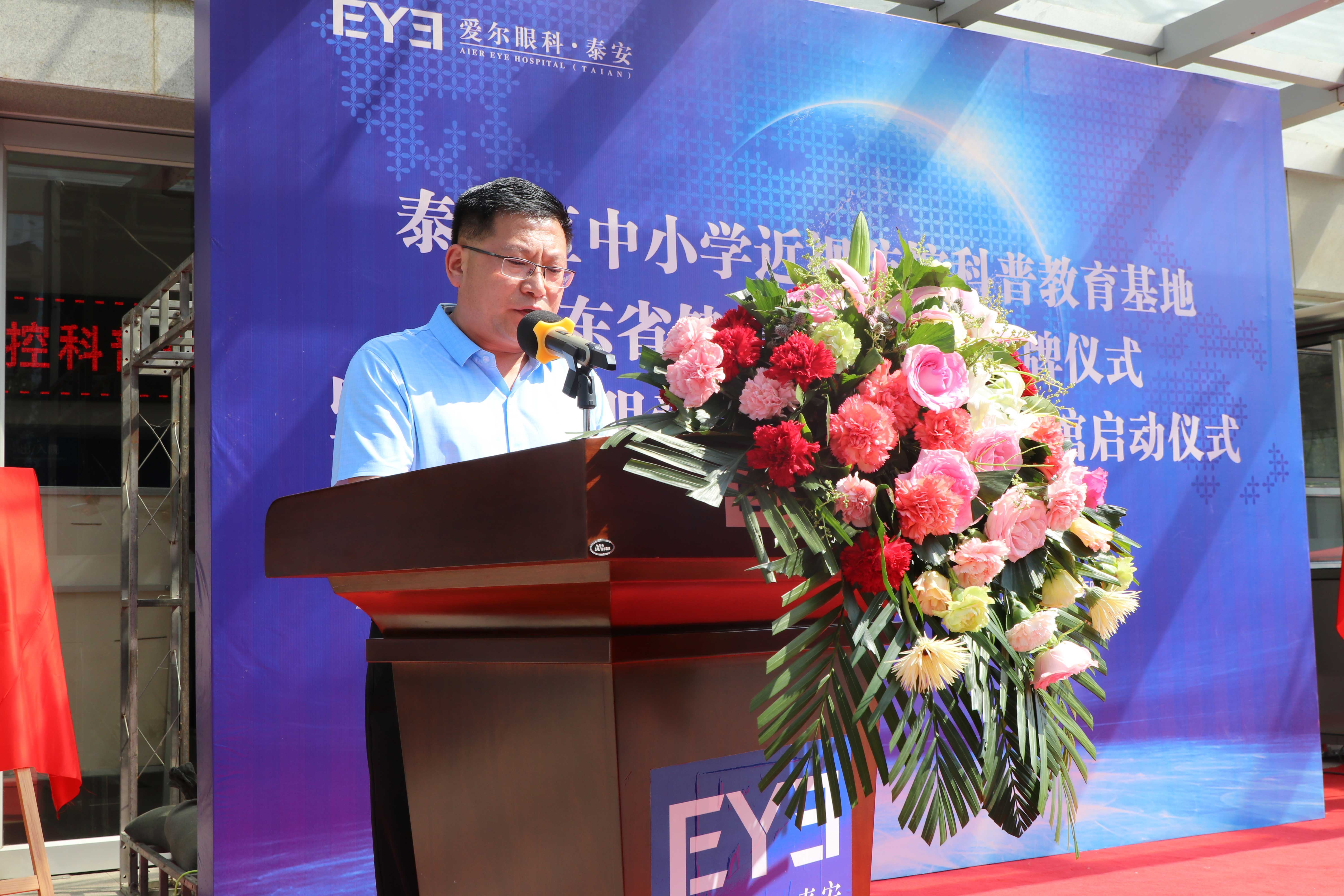 ? ? ? ? 5月27日,泰安市眼健康科普體驗(yàn)館在泰安光明愛(ài)爾眼科醫(yī)院正式啟動(dòng),并被山東省疾病預(yù)防控制中心和泰山區(qū)教體局分別授予“山東省健康教育基地”和“泰山區(qū)中小學(xué)近視防控科普教育基地”。泰山區(qū)衛(wèi)生健康局黨組成員、副局長(zhǎng)寧方莉、泰山區(qū)教育和體育局分管領(lǐng)導(dǎo)高京杰、泰山區(qū)疾病預(yù)防控制中心副主任梁洪濤、泰山區(qū)各中小學(xué)學(xué)校領(lǐng)導(dǎo)、泰山區(qū)各街道衛(wèi)生院院長(zhǎng)出席本次活動(dòng),泰山區(qū)教育和體育局分管領(lǐng)導(dǎo)高京杰主持啟動(dòng)儀式。