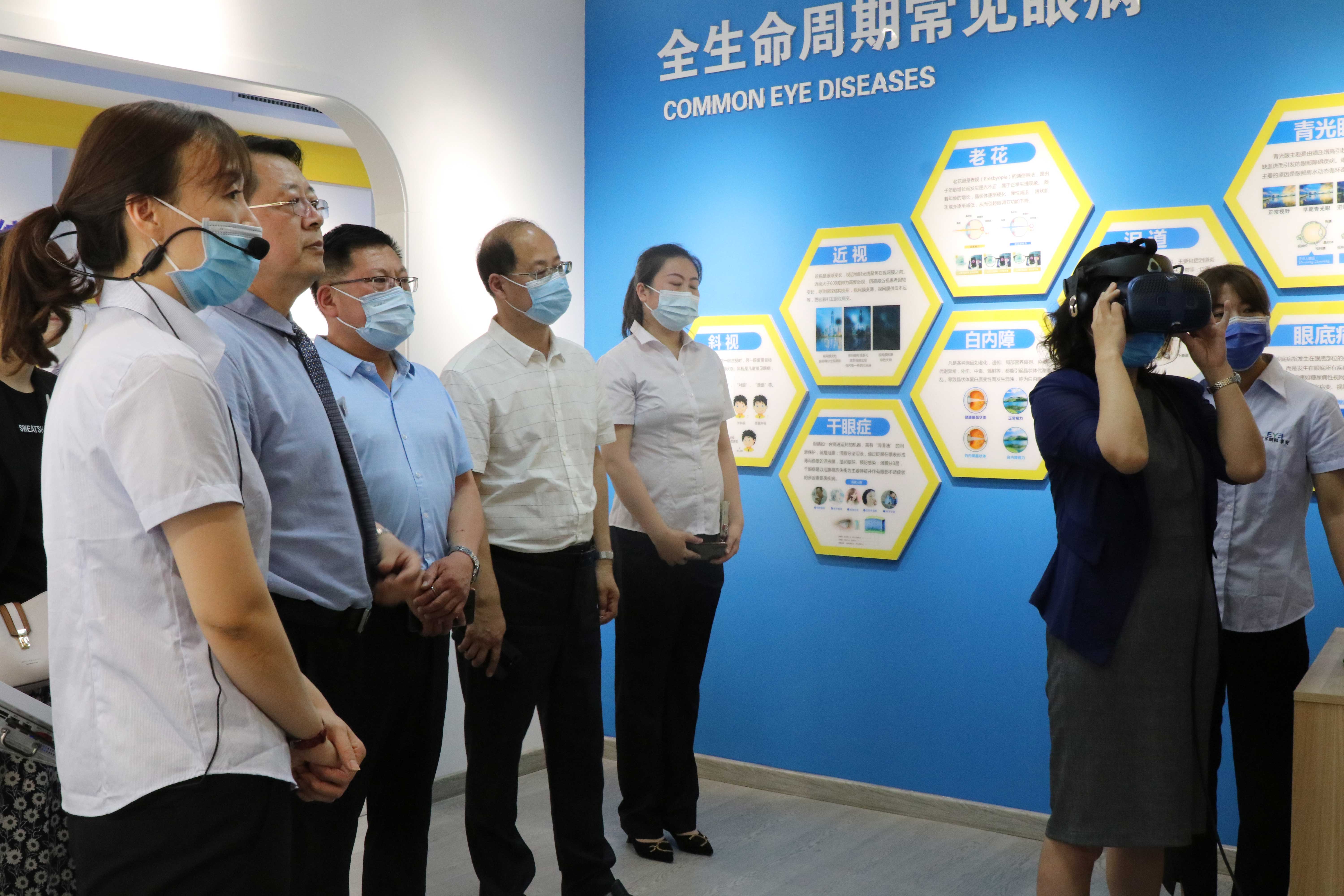 ? ??? 啟動(dòng)儀式結(jié)束后,各位領(lǐng)導(dǎo)、嘉賓走進(jìn)科普館參觀,他們?cè)诳破諈^(qū)了解眼睛健康知識(shí),在VR互動(dòng)區(qū)體驗(yàn)眼科疾病人群的視界,通過(guò)眼健康科普宣傳員的講解,紛紛表示獲益匪淺。